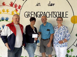 Die Seniorenwerkstatt Baesweiler nutzt seit vielen Jahren die Werkräume im Keller der Grengrachtschule. Jetzt hat der Verein 2.000 Euro an die Schule gespendet. Konrektorin Natalie Keller nahm den Scheck entgegen – und freute sich riesig: „Eine tolle Überraschung, vielen Dank! Mit dem Geld werden wir etwas Schönes für unsere Kinder anschaffen.“ Wofür genau die 2.000 Euro verwendet werden, entscheiden die Schülerinnen und Schüler selbst mit. Das Schülerparlament sammelt gerade Ideen. Die Seniorenwerkstatt Baesweiler und die Grengrachtschule sind eng verbunden. Vor ein paar Jahren baute der Verein zum Beispiel Kinderholzbänke und stattete mehrere Klassenräume damit aus. Die Senioren verkaufen ihre Holzarbeiten auch regelmäßig auf Märkten. Die Erlöse werden gespendet. In diesem Jahr durfte sich die Grengrachtschule über einen Beitrag freuen.